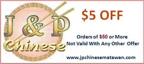 Welcome to J & P Chinese Restaurant in Matawan and taste our fine Chinese Cuisine. Dine in, take out and delivery are all welcome.